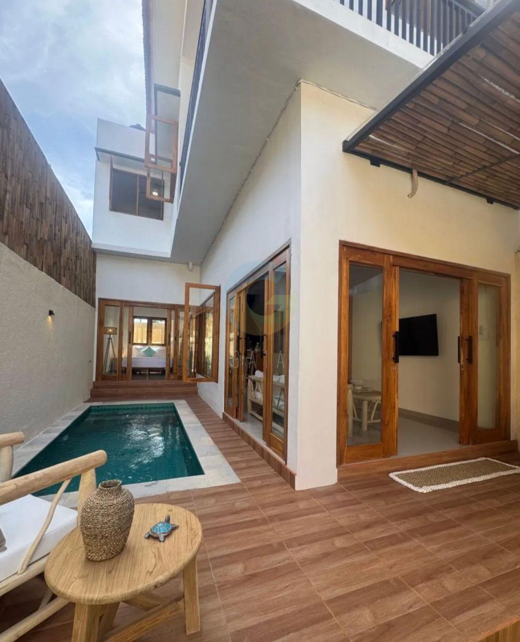 Private swimming pool surrounded by lush tropical gardens